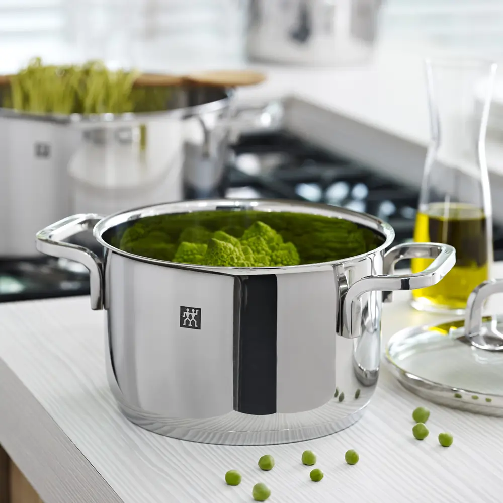 متعلقات همراه محصول | 4 درپوش شیشهای (برای استاکها و استیو)، بدون لوازم اضافی؛ سازگار با سبد بخار Zwilling (جداگانه)، دفترچه راهنما چندزبانه با 20 دستور پخت. |